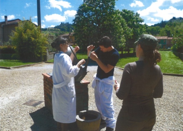 Stefania Agnoletti, Elena Della Schiava e Filippo Tattini impegnati nel restauro del Martinaccio, 2013